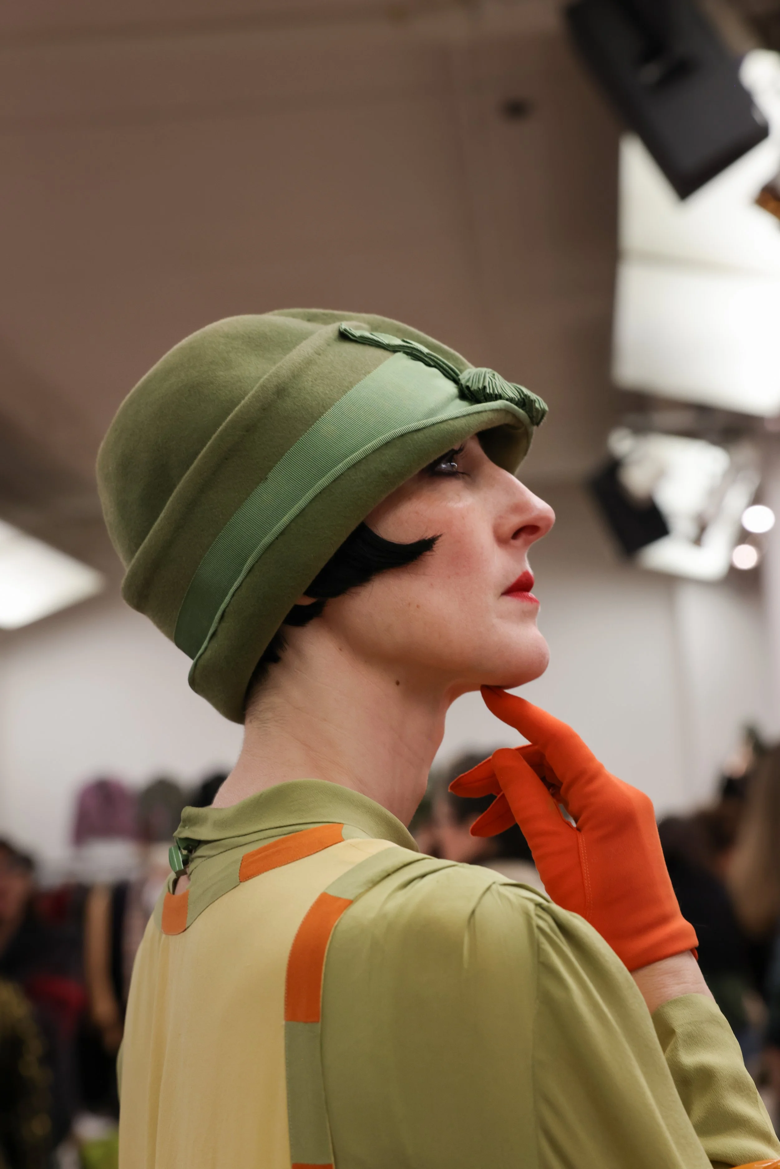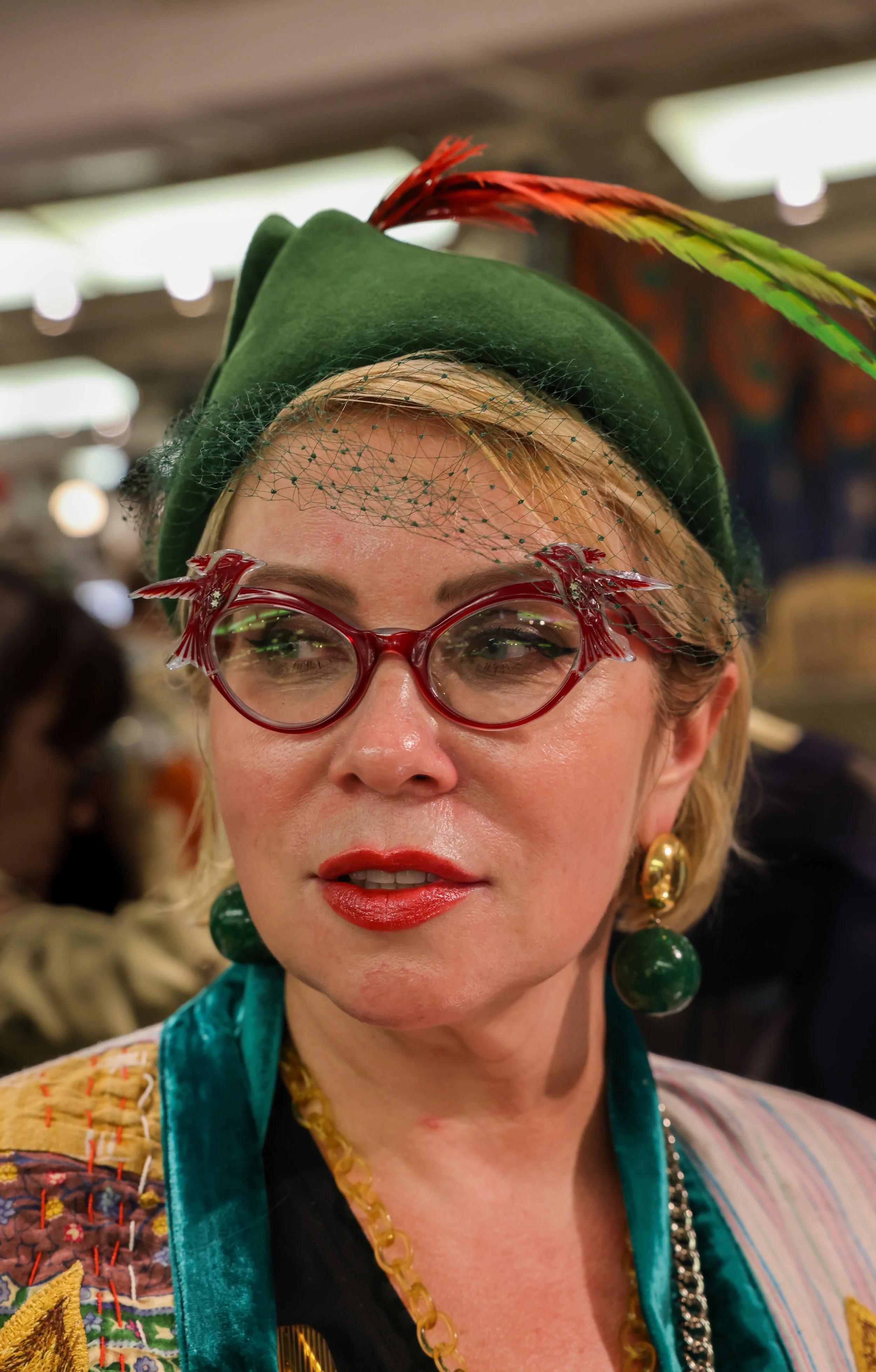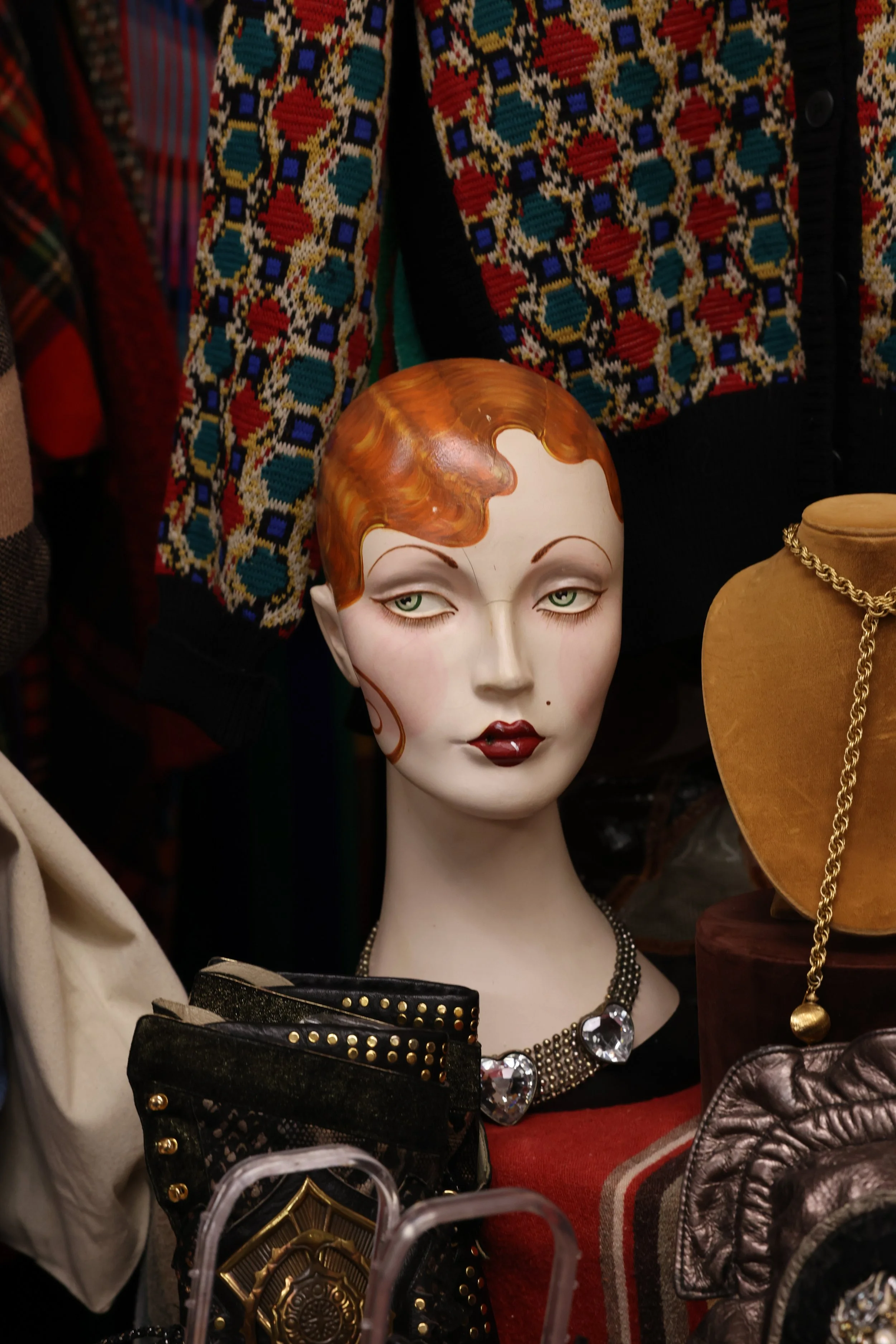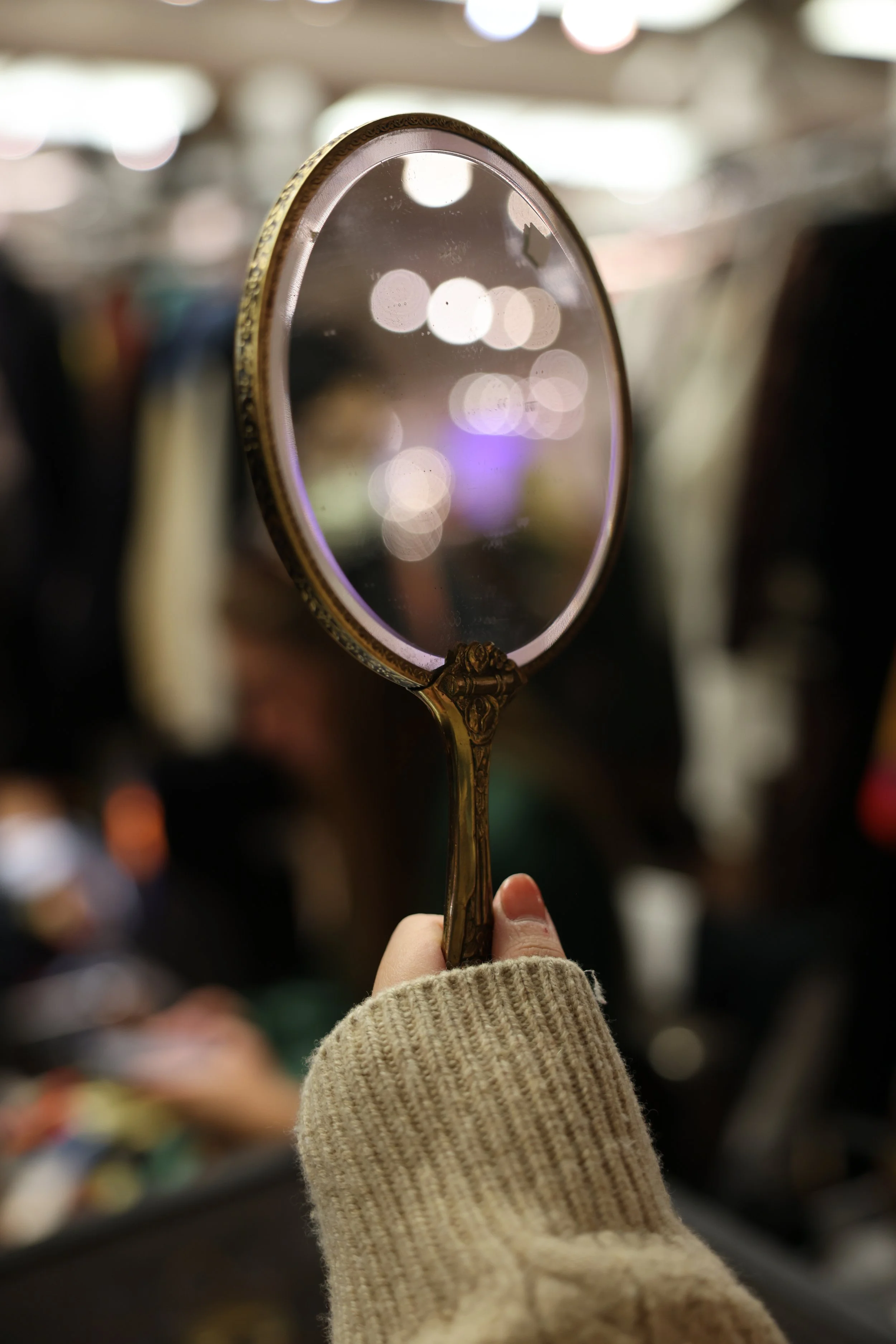 by seeing and touching the objects like an antique mirror, hat or costume.