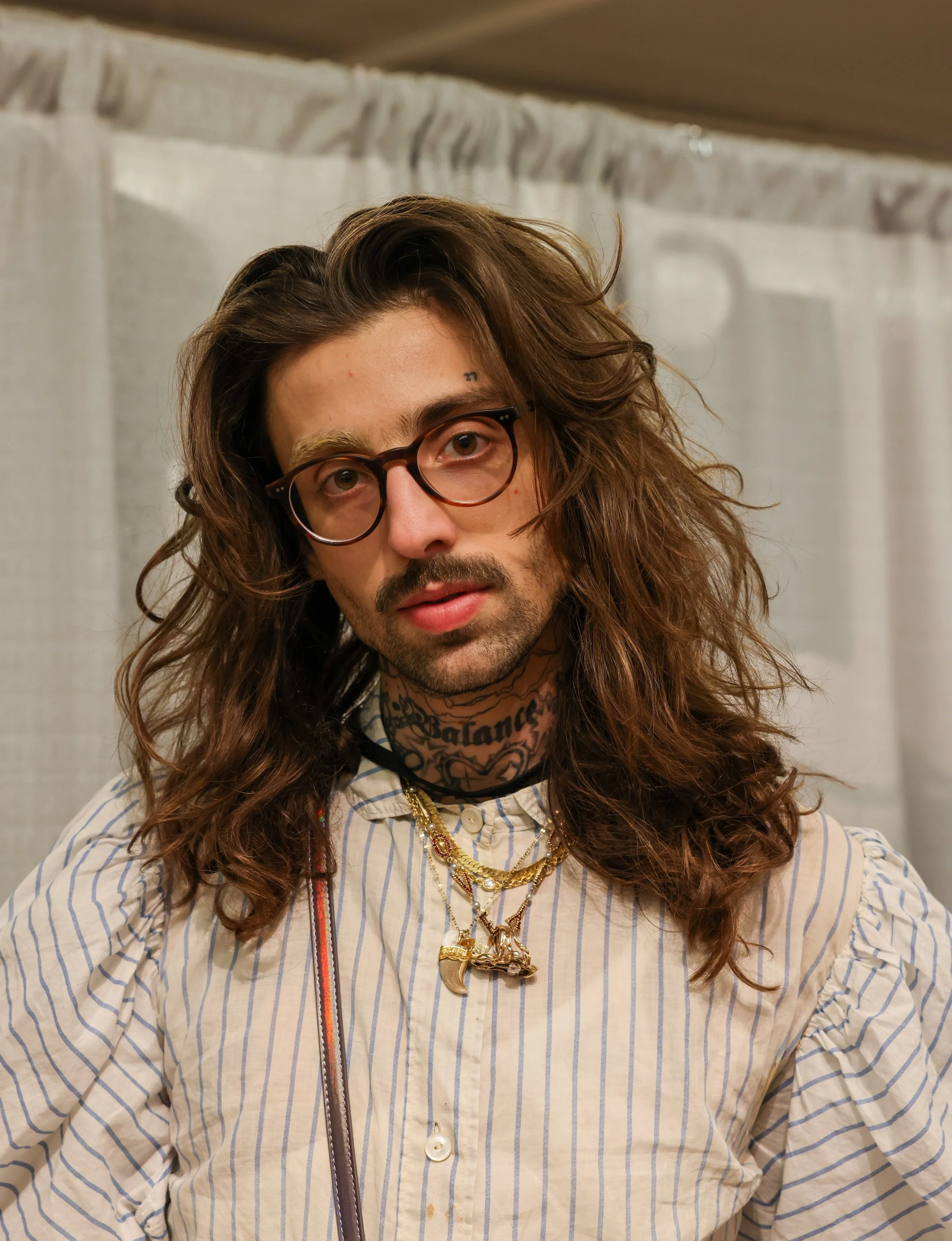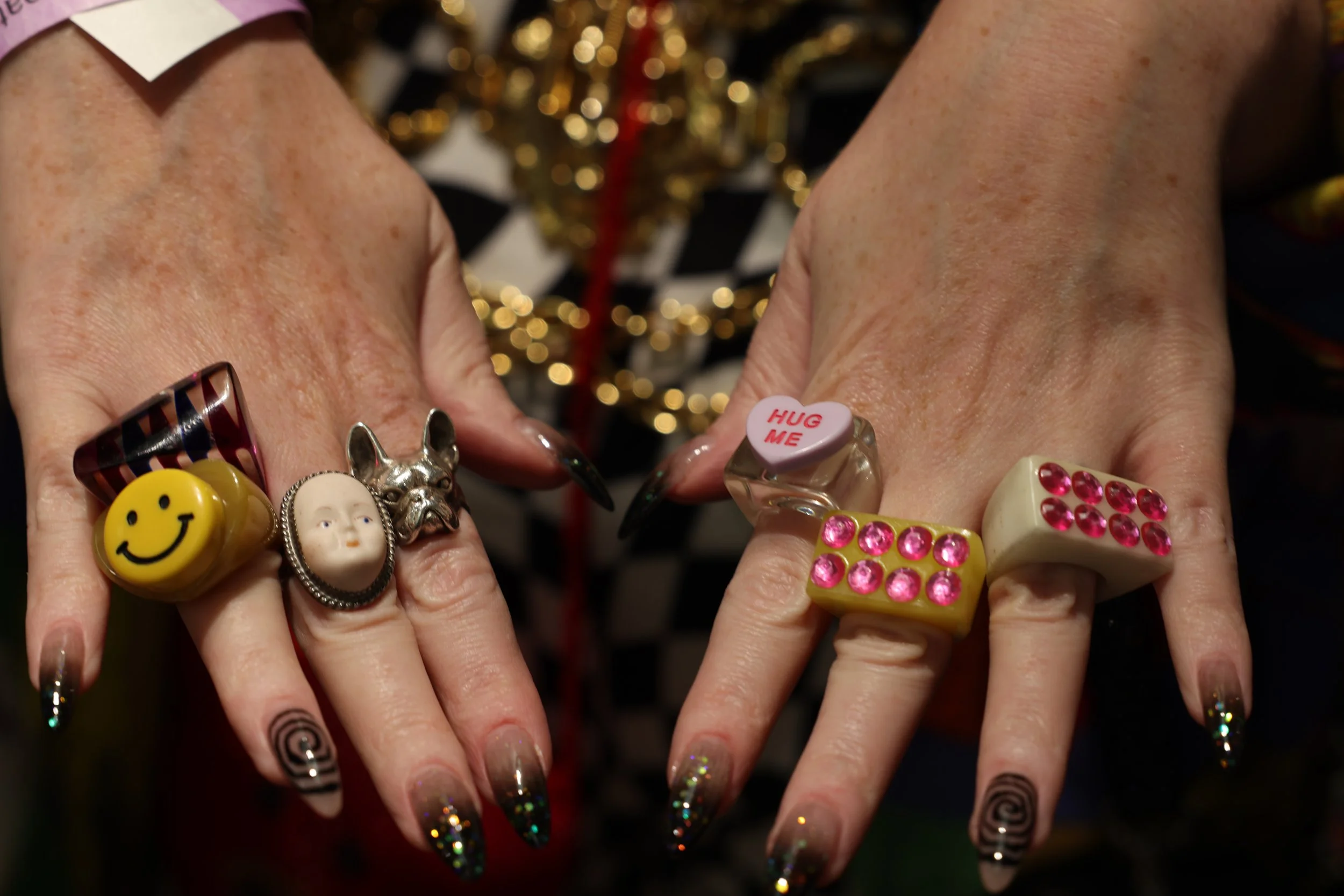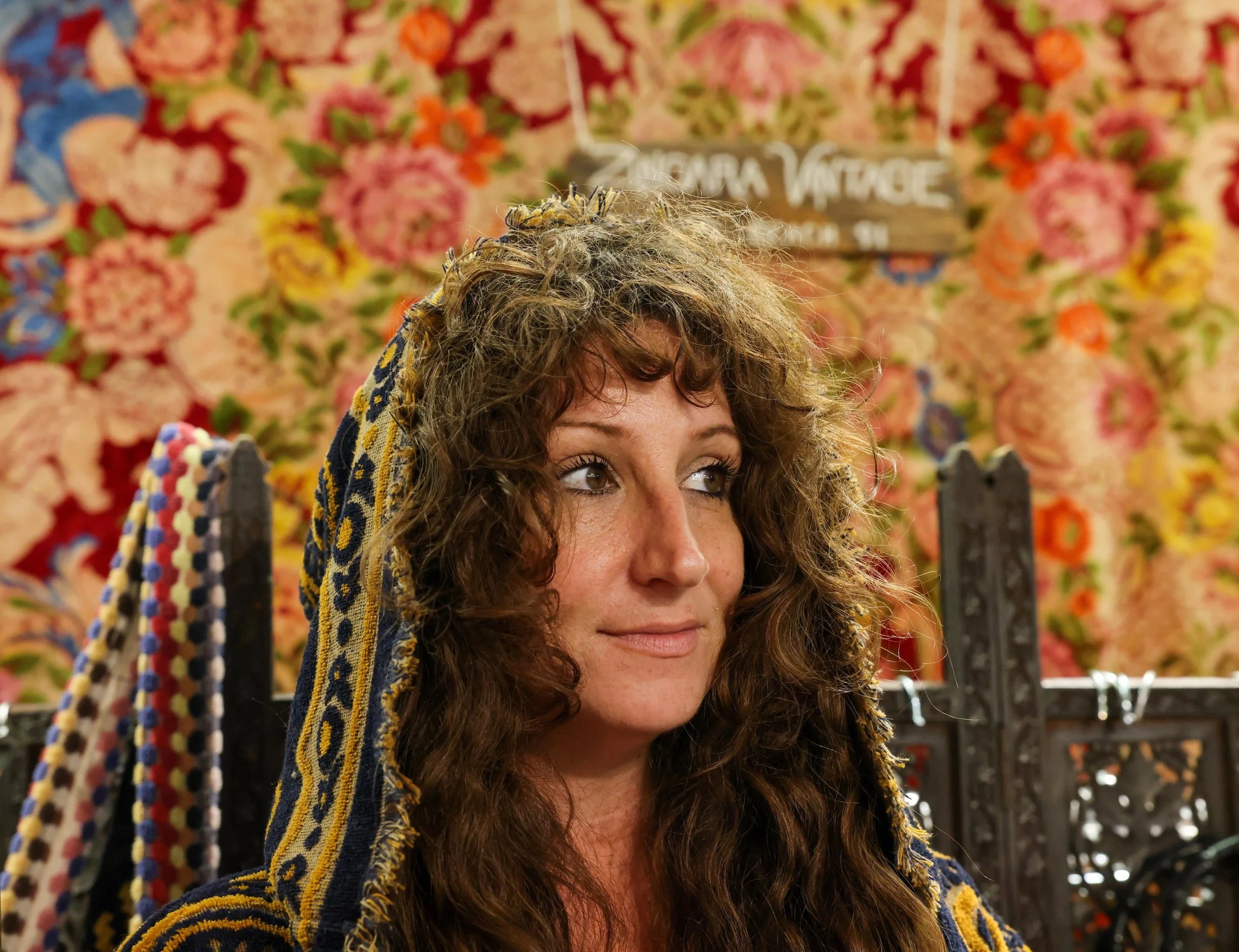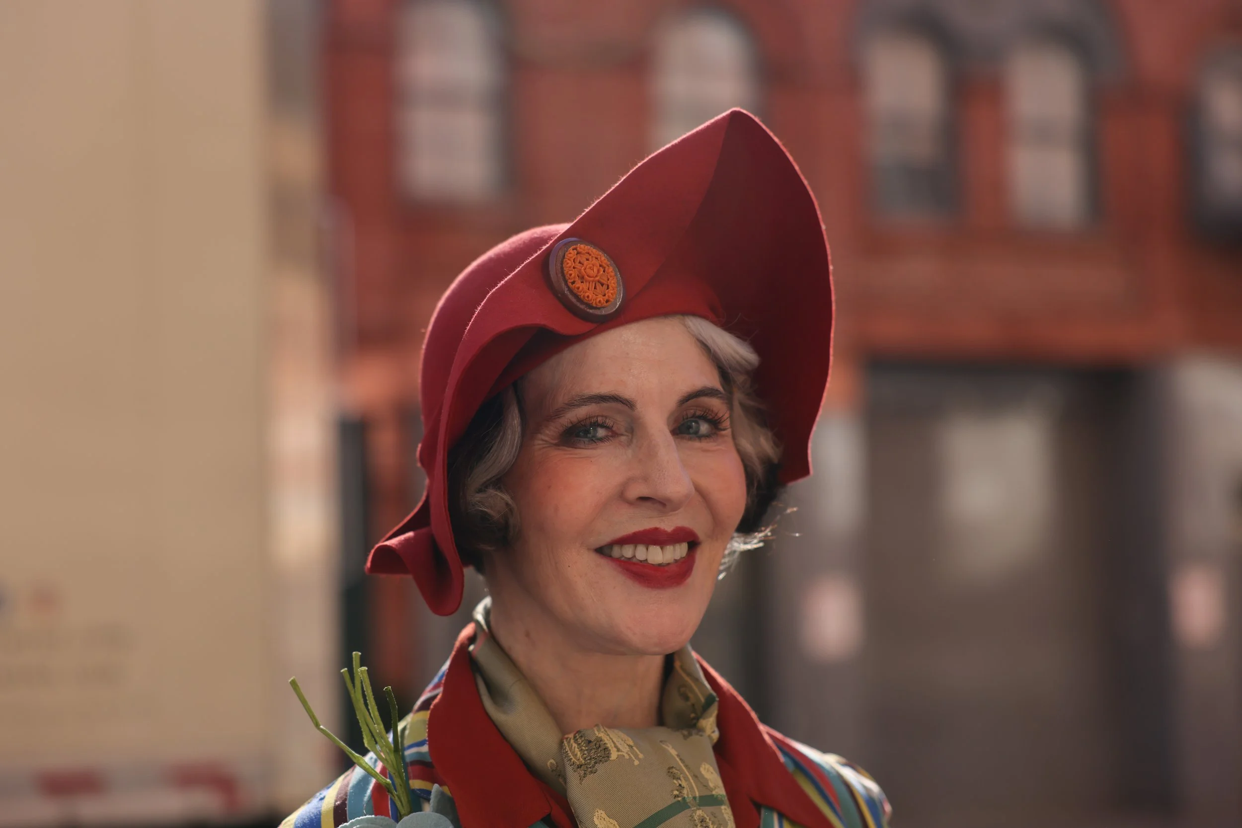 by seeing and touching the objects like an antique mirror, hat or costume.